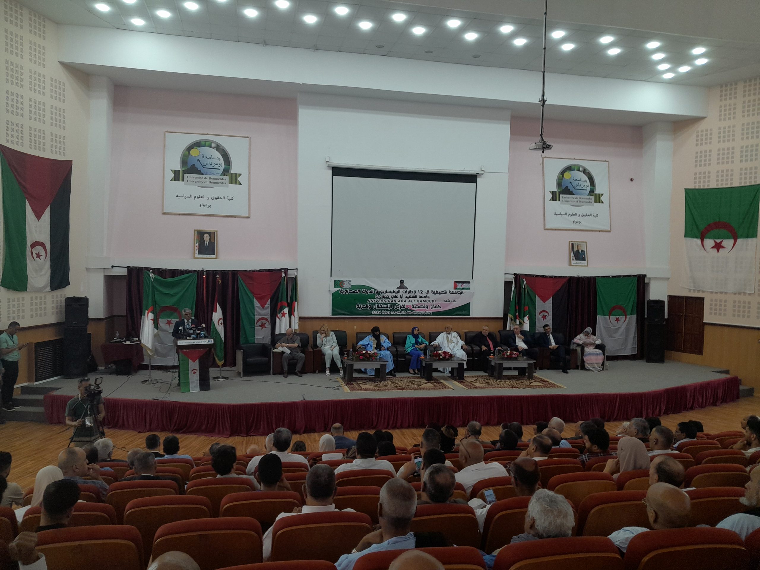 L’ambassadeur de la République Sahraoui Abdelkader Talbi, souligne l’importance de l’action politique et guerrière de son pays qui lutte pour son indépendance contre le régime Marocain injuste et corrompu: » Le combat du peuple Sahraoui entre dans le cadre du droit international. C’est la raison pour laquelle plus de 80 pays a travers le monde sont resté solidaire et fidèle aux valeurs universelles basée sur la liberté, l’indépendance et la justice. Le Sahara occidental avance doucement mais sûrement jusqu’à la déclaration officielle de l’indépendance de notre pays » a-t-il indiqué lors de son allocution d’ouverture de l’université d’été 2024 à l’université de Boudouaou.