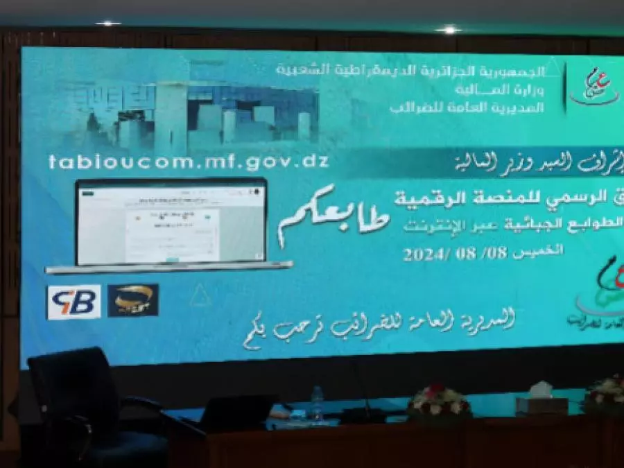 La Direction générale des impôts DGI, lance la plateforme numérique Tabioucom » Votre timbre », dédiée au paiement en ligne des droits de timbres fiscaux. La cérémonie de lancement de cette plateforme a été présidée par le ministre des Finances, Laaziz Faid, en présence du ministre de la Poste et des Télécommunications, Karim Bibi Triki, de la Haut-commissaire à la numérisation, Meriem Benmouloud, du médiateur de la République, Madjid Ammour, et du représentant du ministère de l’Intérieur, des Collectivités locales et de l’Aménagement du territoire, ainsi que des représentants des deux chambres du Parlement.